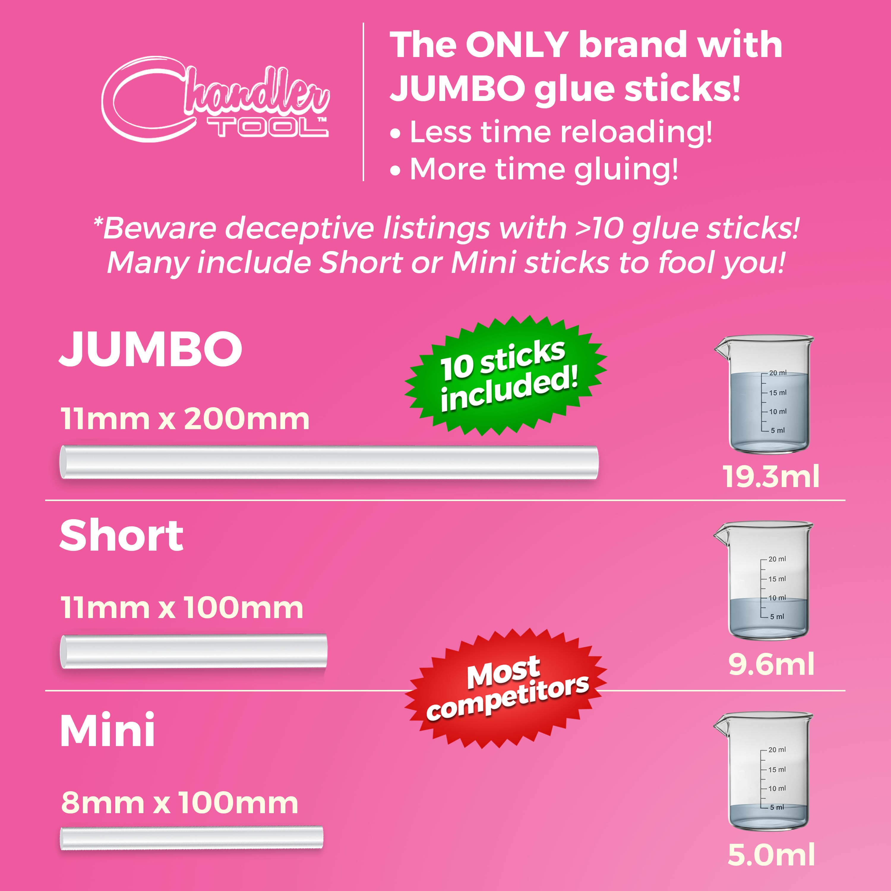 - GLUE STICKS: 10 sticks included @ 11mm / 7/16”