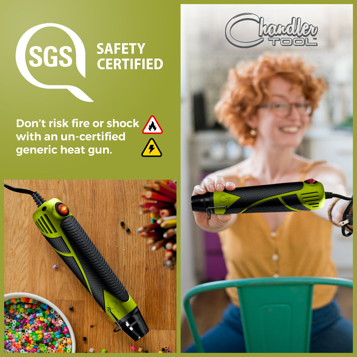 • UL-CERTIFIED – Our glue guns are all UL certified. It’s kind of a big deal...which means as much as we like making an impact, we don’t want to shock, burn, or set things ablaze. For those that do not know, UL stands for Underwriters Laboratories; the industry standard for North American safety certification. UL Certification ain’t cheap, but we’re proud to say we won’t sell a heat gun without it.