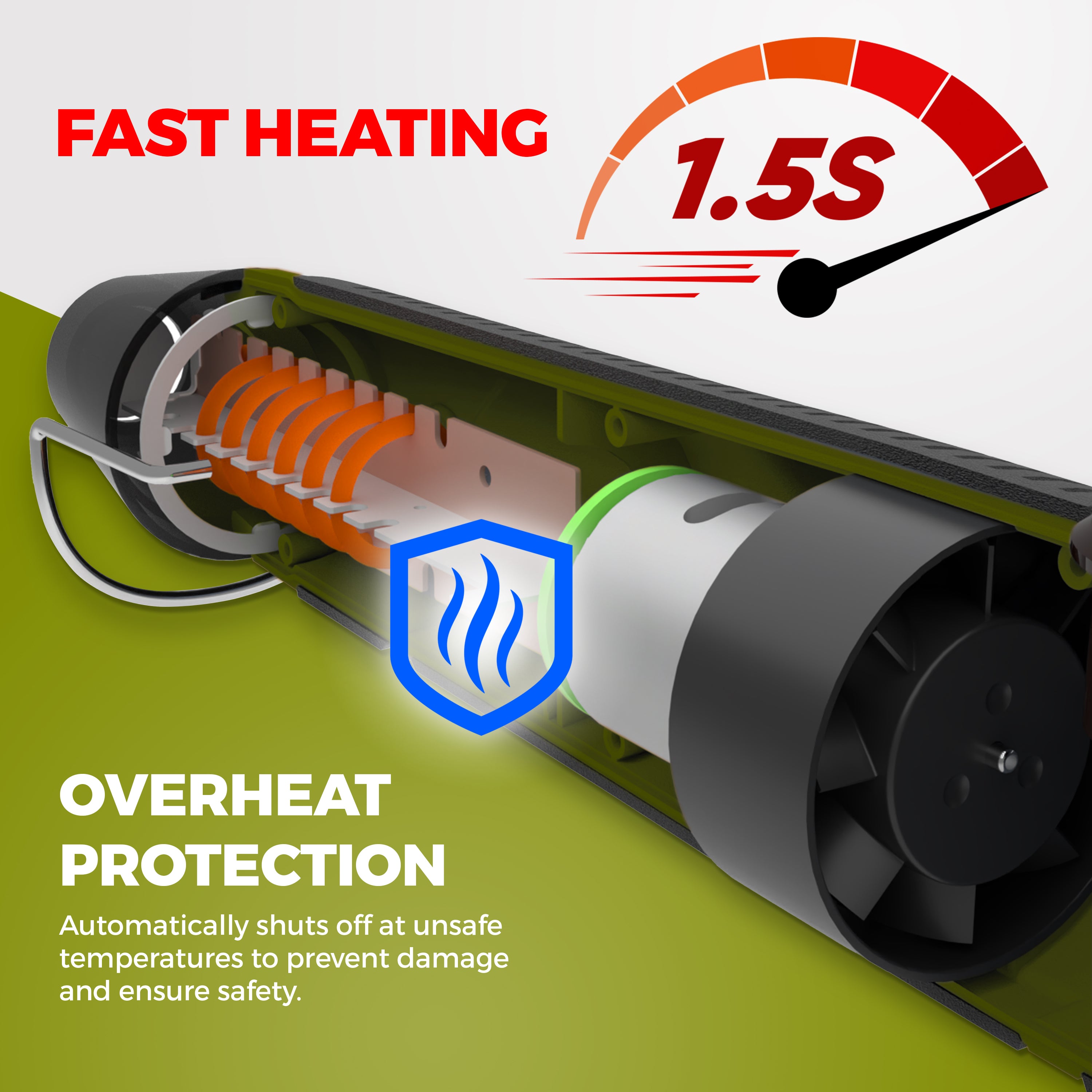 • LOW HEAT SETTING: 200°C / 392°F / 150 watts